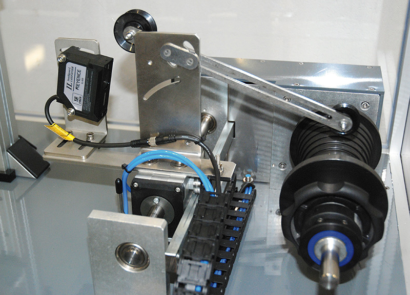 El sensor detector de la valona se monta sobre el sistema transversal. En un punto concreto, la distancia actual es capturada y guardada como distancia de referencia para cada capa individual.